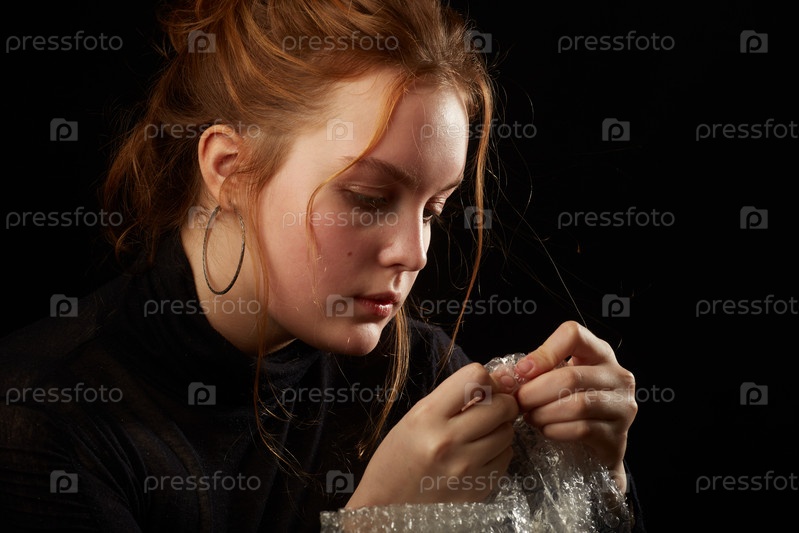 Женщина лопает мыльные пузыри