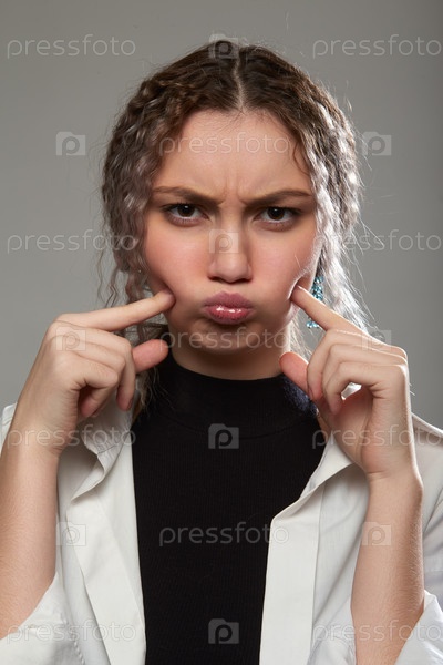 Веселая женщина гримасничает