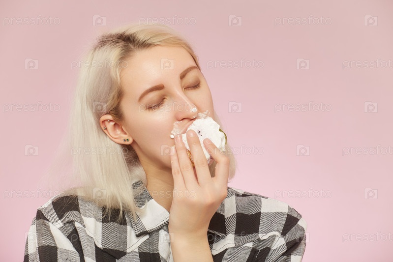 Девушка ест десерт