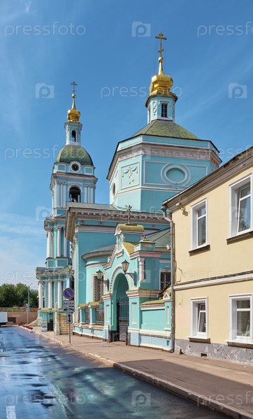 Вид на церковь Живоначальной Троицы в Серебряниках и колокольню, построенную в 1781 году, Серебрянический переулок, Москва