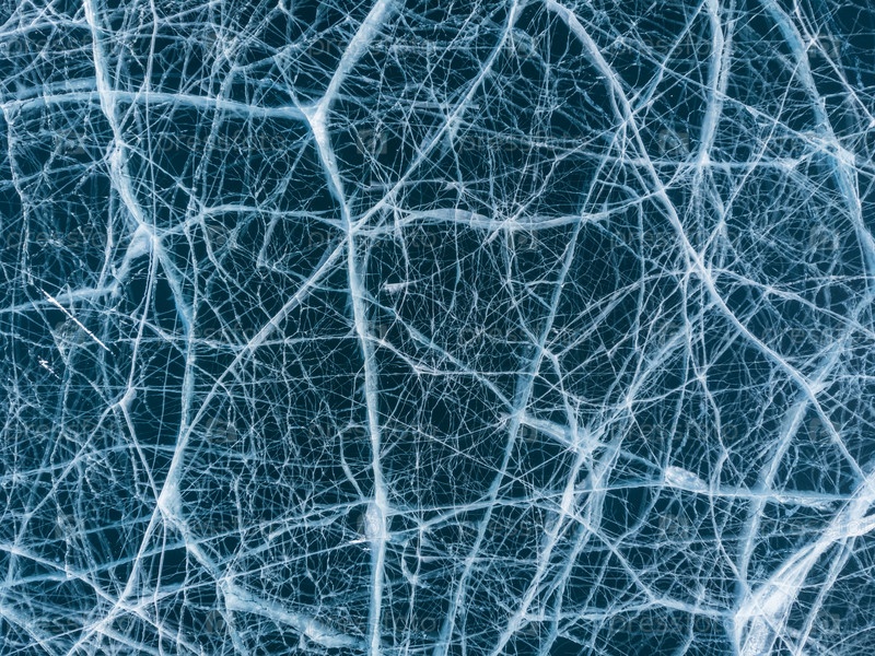 Естественная текстура зимнего льда с белыми пузырьками и трещинами на замерзшем озере. Абстрактный фон льда и трещин на поверхности замерзшего озера Байкал
