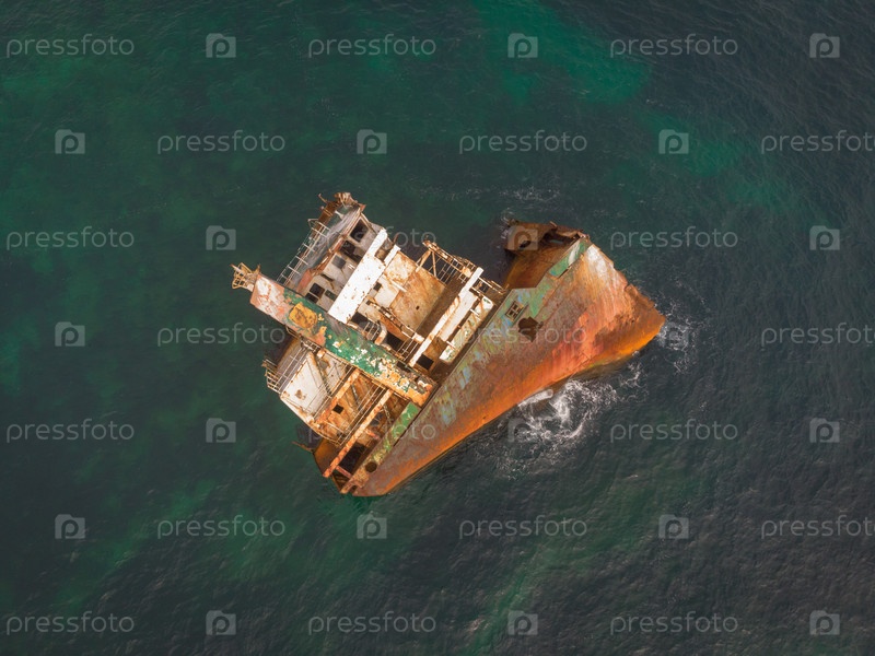Затонувший корабль, севший на мель транспортный корабль, ржавый остов корабля