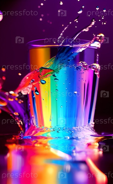 Абстрактный фон с прозрачным стеклом и радужной жидкостью