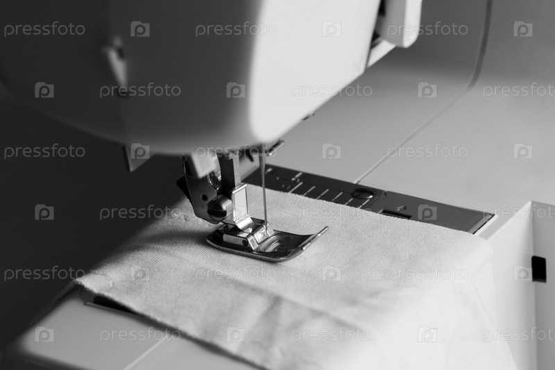 Швейная машина в черно-белом режиме, медленная мода и концепция домашнего шитья