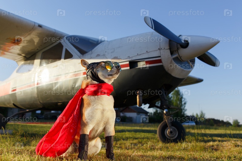 Забавное фото собаки шиба-ину в костюме пилота в аэропорту