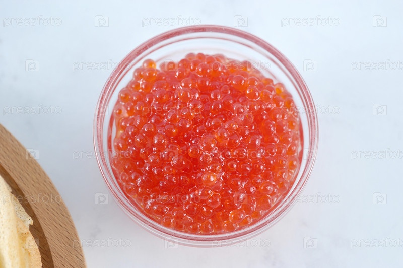 Красная икра в прозрачной стеклянной посуде