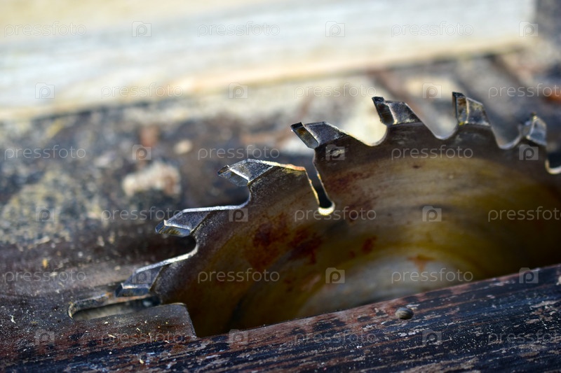 Циркулярная пила на деревообрабатывающем станке в гараже