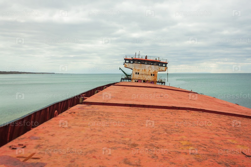 Вид с борта корабля на каюту капитана. Покинутый после кораблекрушения сухогруз