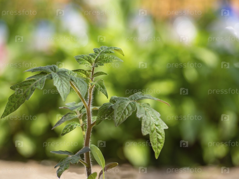 Молодые растущие помидоры в саду крупным планом. Рассада томатов растет в почве. Молодой саженец томатов, растущий в саду. Выращивание овощей дома
