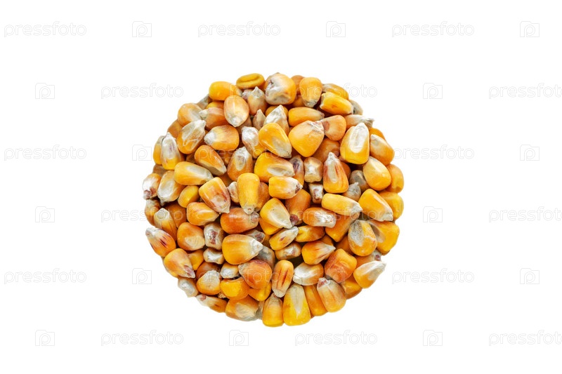Изолят цельных семян кукурузы в форме круга. Зерновые, сельскохозяйственные культуры. Вид сверху