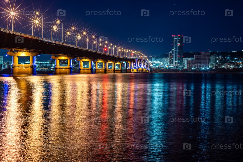 Саратовский мост через волгу на фоне ночного города Саратов