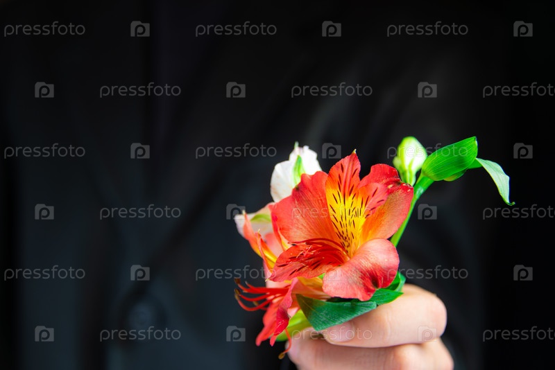 Красные и белые цветы в вытянутой руке