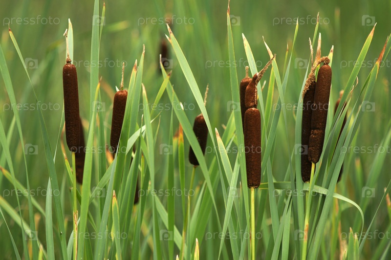 Стебли камыша на берегу пруда., Стебли камышей на берегу пруда