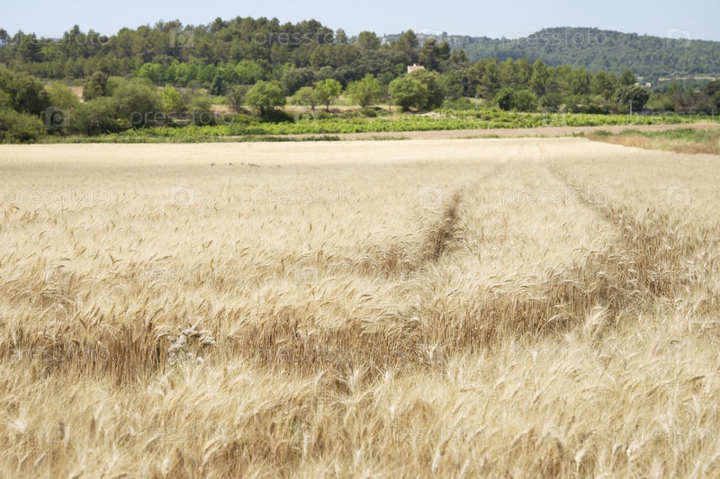 Франция. Прованс. Золотые поля в провинции Прованс. Пассажирские авиаперевозки. Франция. Прованс. Grain fields in the province of Provence