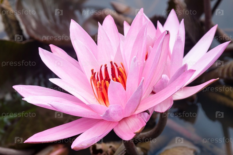 Дикая розовая водная лилия или цветок лотоса (Nelumbo nucifera) в воде Нимфы в пруду Индонезия, Папуа-Новая Гвинея