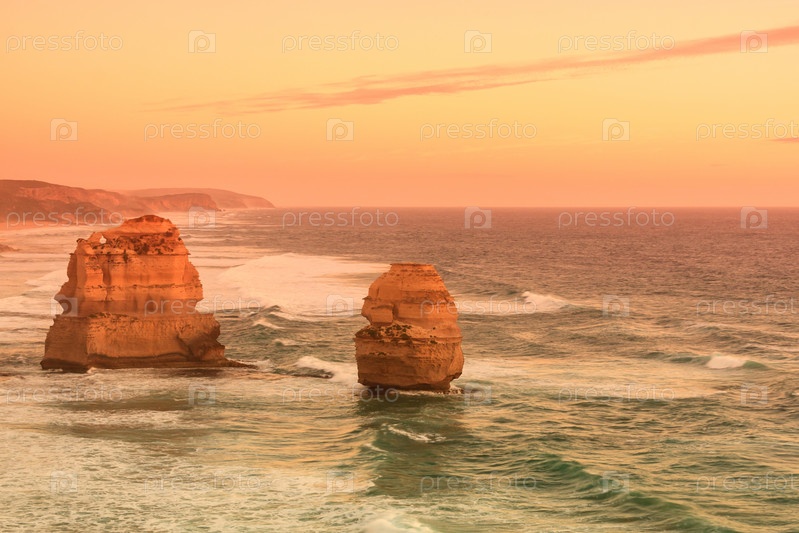 Розовый фильтр, Морские скалы Двенадцати апостолов на закате возле Великой океанской дороги, Национальный парк Порт-Кэмпбелл, Австралия