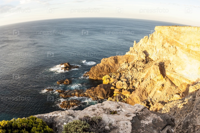 Красивый морской пейзаж вечером, Южная Австралия, остров Кенгуру. Изображение океана и скал «рыбий глаз». Туристическая концепция
