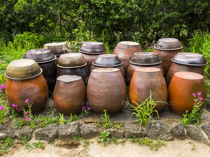 Чандок или традиционные корейские горшки для ферментации кимчи, пасты из красного перца и соевых бобов
