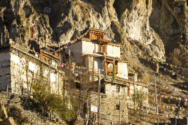 Буддийский монастырь в горной деревне Брага (Брака) в Непале, Гималаи