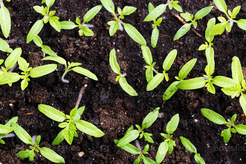 Молодые маленькие зеленые ростки на земле