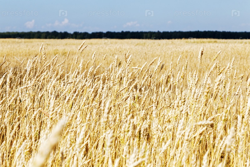 Зреющие колосья желтого поля пшеницы