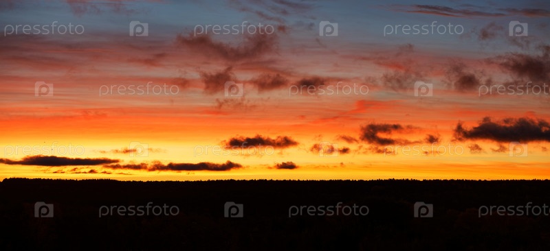 Багровый рассвет над лесом