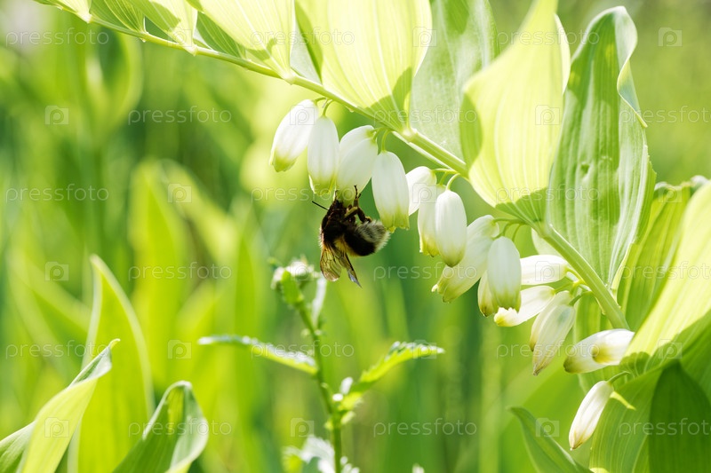 Цветочное растение Polygonatum multiflorum на размытом фоне Также известно как печать Соломона, арфа Давида, лестница в небо или евразийская печать Соломона
