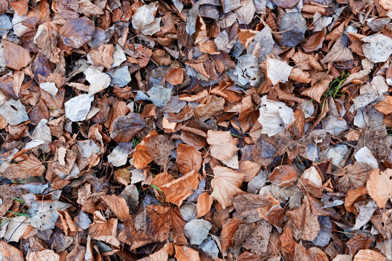 Опавшая осенняя сухая листва на земле. Вид сверху. Осенний фон природы