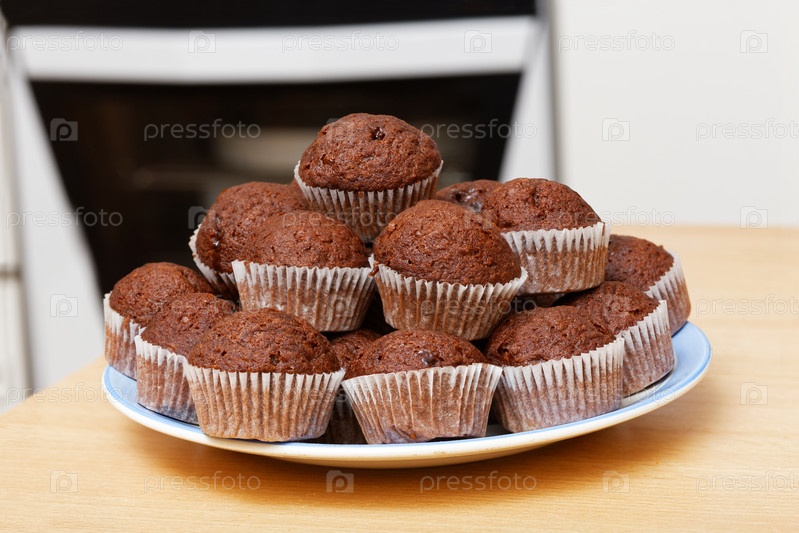 Стопка маленьких кексов с шоколадной крошкой