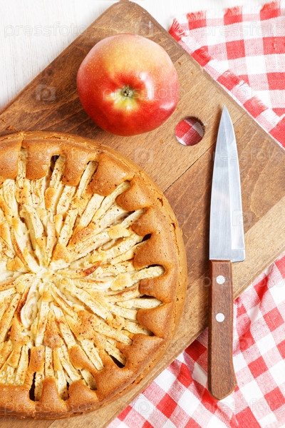 Домашний яблочный пирог на белом столе