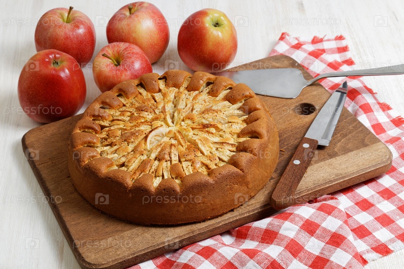 Домашний яблочный пирог на белом столе