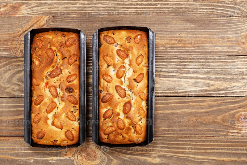 Домашний шоколадный чизкейк с ломтиками миндаля на белом деревянном столе. Вид сверху