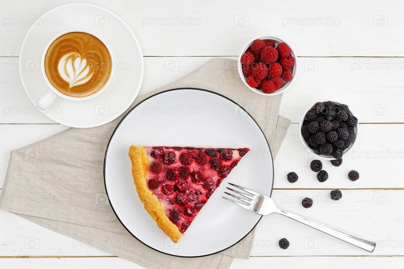 Домашний шоколадный чизкейк с ломтиками миндаля на белом деревянном столе. Вид сверху