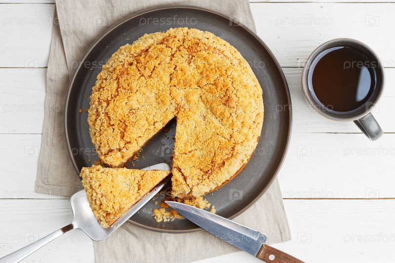 Домашний шоколадный чизкейк с ломтиками миндаля на белом деревянном столе. Вид сверху