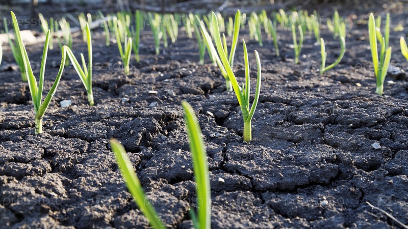 Молодые маленькие зеленые ростки на пустой голой земле