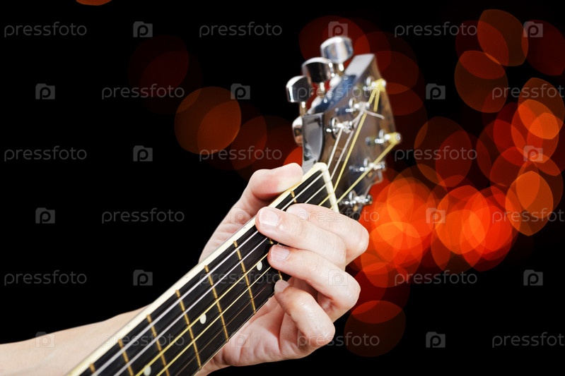 Крупный план пальцев на шее гитары