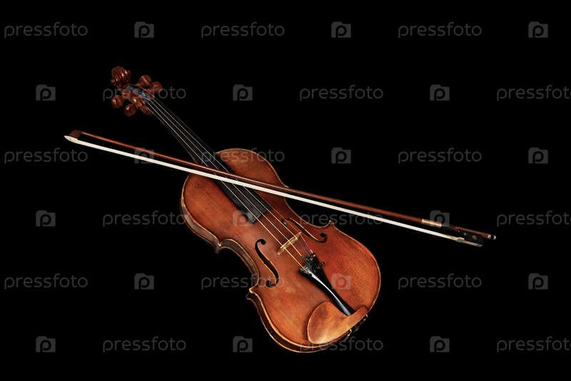 Старая классическая скрипка с бантом на черном фоне