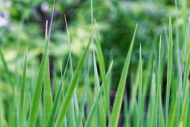 Крупным планом зеленая трава. Абстрактный фон природы. Мелкий фокус