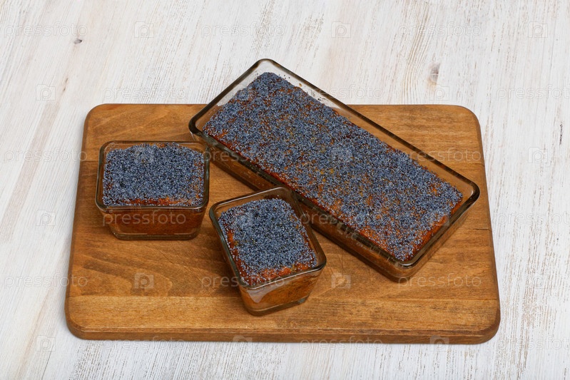 Три пирожных с лимонным маком на деревянной тарелке, вид под углом