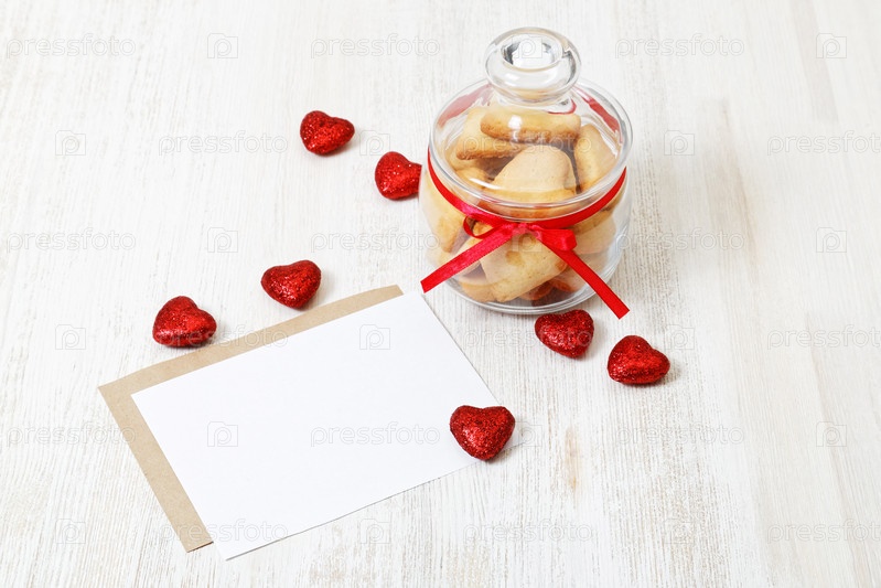 Домашнее печенье в форме сердца в стеклянной банке
