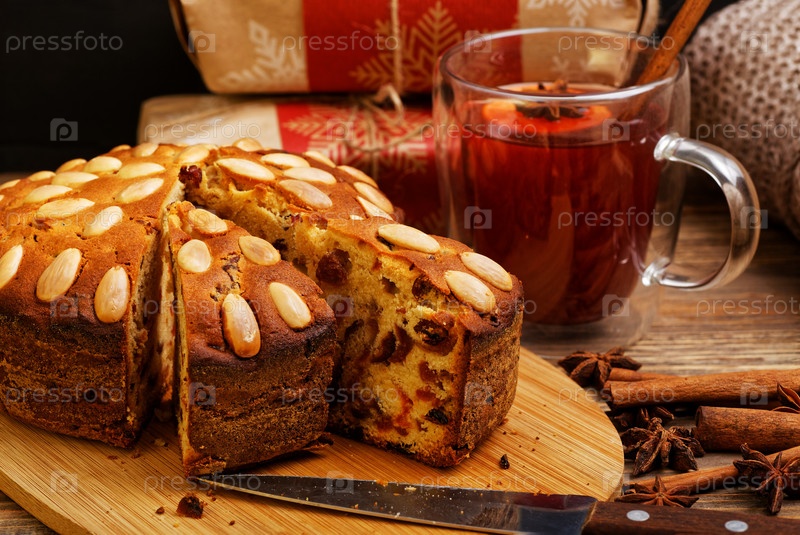 Домашний шоколадный чизкейк с ломтиками миндаля на белом деревянном столе. Вид сверху
