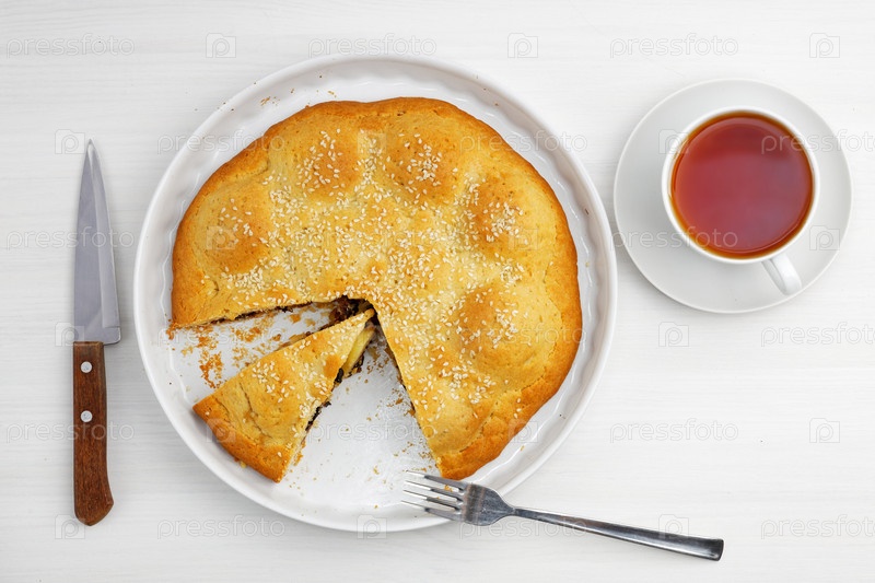Домашний шоколадный чизкейк с ломтиками миндаля на белом деревянном столе. Вид сверху