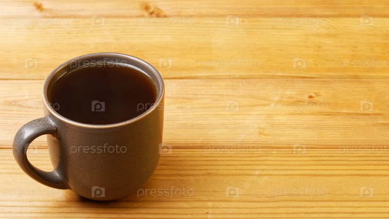 Кружка чая на деревянном столе. Копипространство