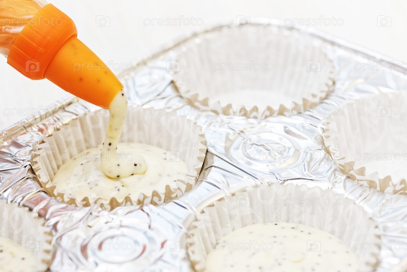 Наполнение формы для выпечки сырым тестом с маком