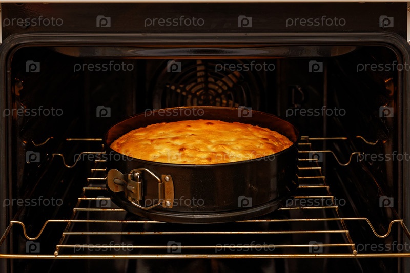 Домашний яблочный пирог крупным планом готовят в домашней печи