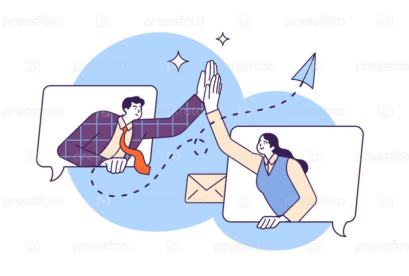 Коллеги работают удаленно онлайн и здороваются друг с другом