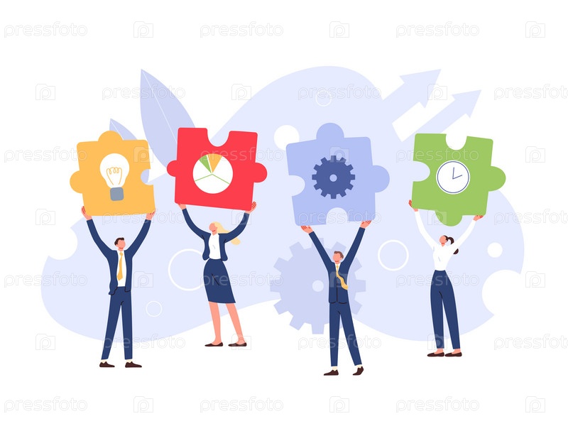 Деловые люди с кусочками головоломки в руках готовы собрать их вместе