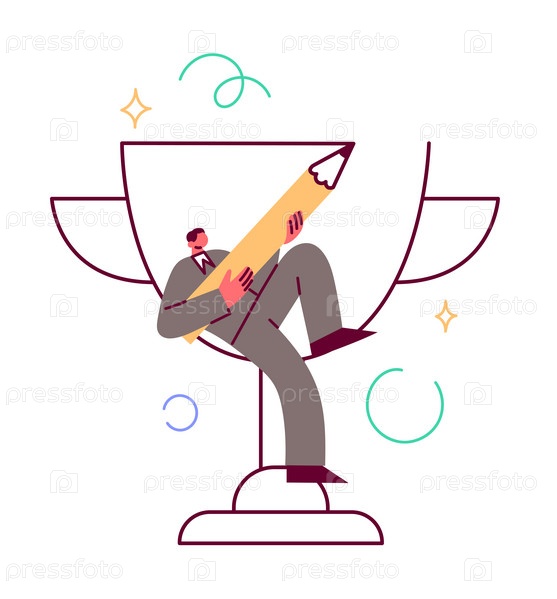 Деловой человек воображает успех и победу, рисуя чашку