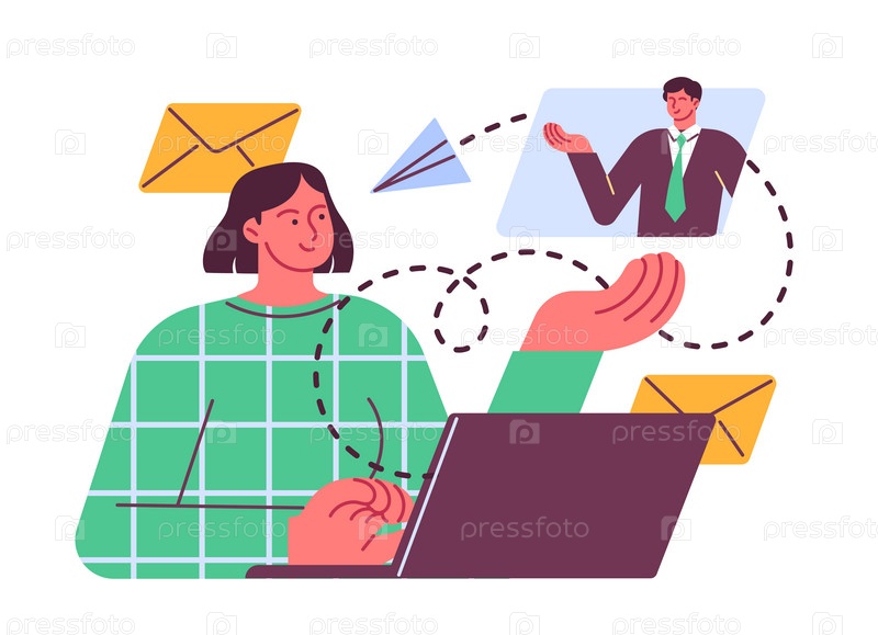 Женщина работает удаленно с ноутбуком и общается онлайн с сотрудником