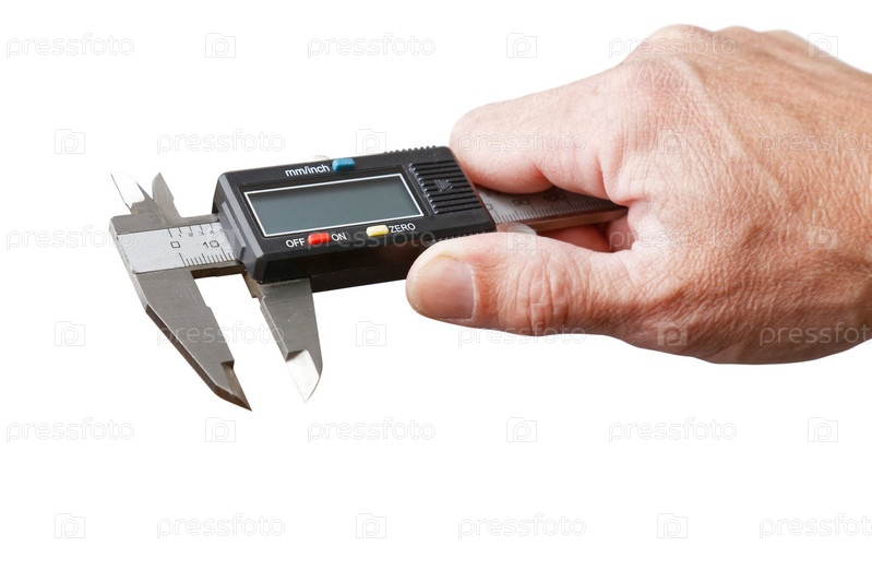 Рука крупным планом держит электронный цифровой штангенциркуль